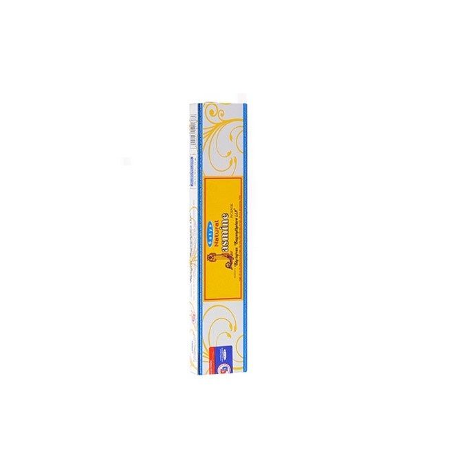 Satya Natural Jasmine — натуральные ароматические палочки с ароматом жасмина. Благовония изготавливают вручную мастера Индии из растительного сырья: трав, цветов и эфирных масел. Аромапалочки безвредны, поскольку не выделяют при тлении токсичных соединений.
